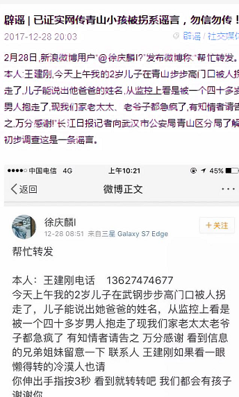 近日,一则“温州武冈有一小孩被拐走”的信息在在微信朋友圈中被大量转载传播。