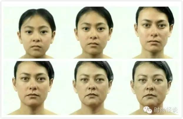 科学家曾经模拟人衰老的过程做了个片子叫做《一分钟年华老去》,片中所示,在衰老的过程中,下巴变长了,眼睛变窄,柔和的轮廓变“硬”了,骨骼突出了,而肉往下松弛……