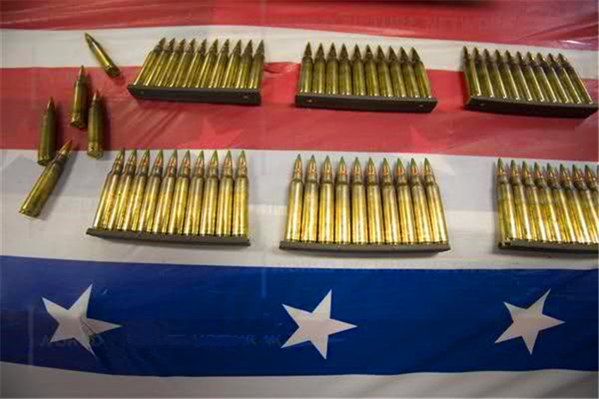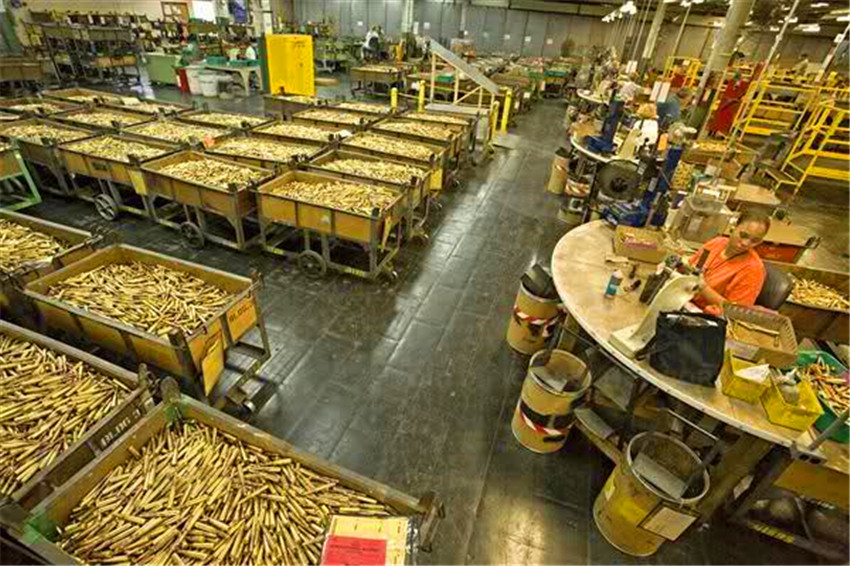 一位Colt(柯尔特)国防军工厂的雇员正工作在M4步枪装配线上。