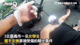 据台湾东森新闻云报道,台湾嘉义市忠孝路3日发生一起车祸,摩托车骑手受伤流血倒地哀嚎,一名女孩本出自好心紧握他的手安慰。