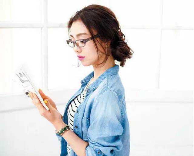 将全部刘海扎起,有点凌乱,有点蓬松的造型,清爽又迷人,配上一副圆形黑框的眼镜,俏皮感瞬间爆表。