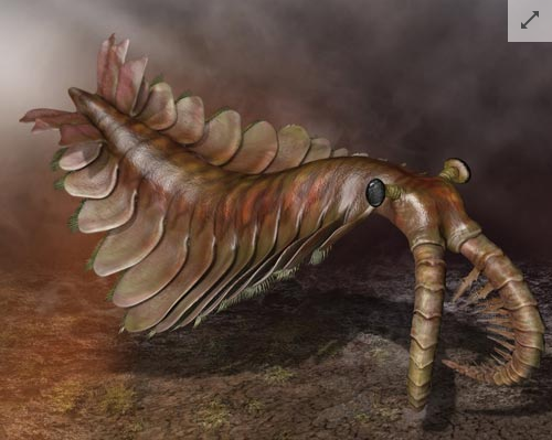 地球最早的居民居然是它们,长相怪异有五只眼睛。欧巴宾海蝎是寒武纪的远古动物。生活于大约5.3亿年前的海洋之中,大概位于现在加拿大所处的位置。