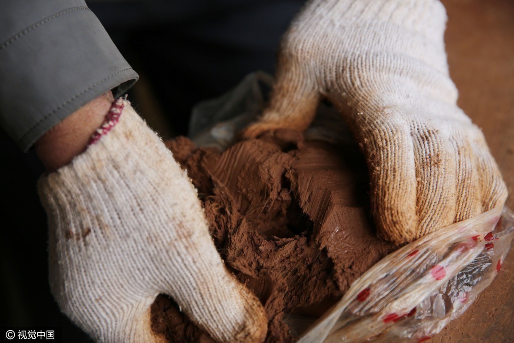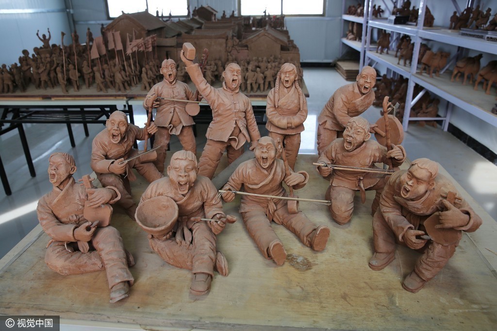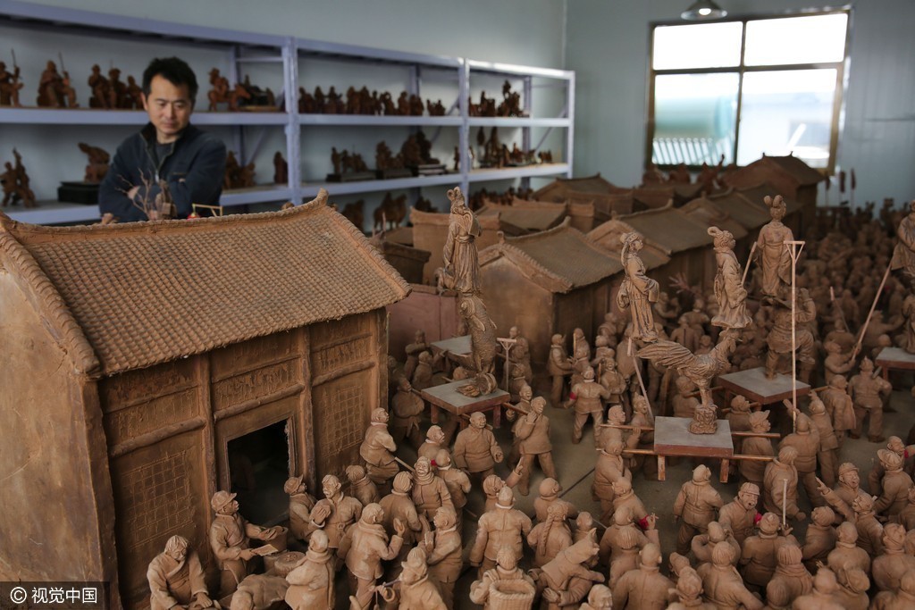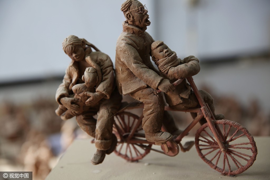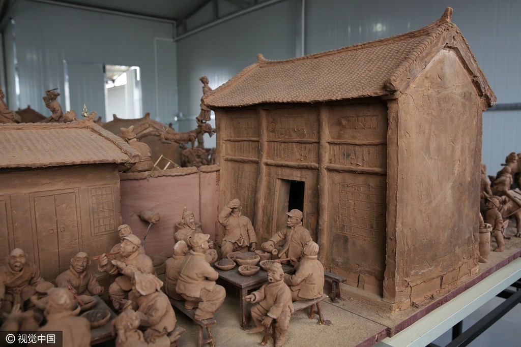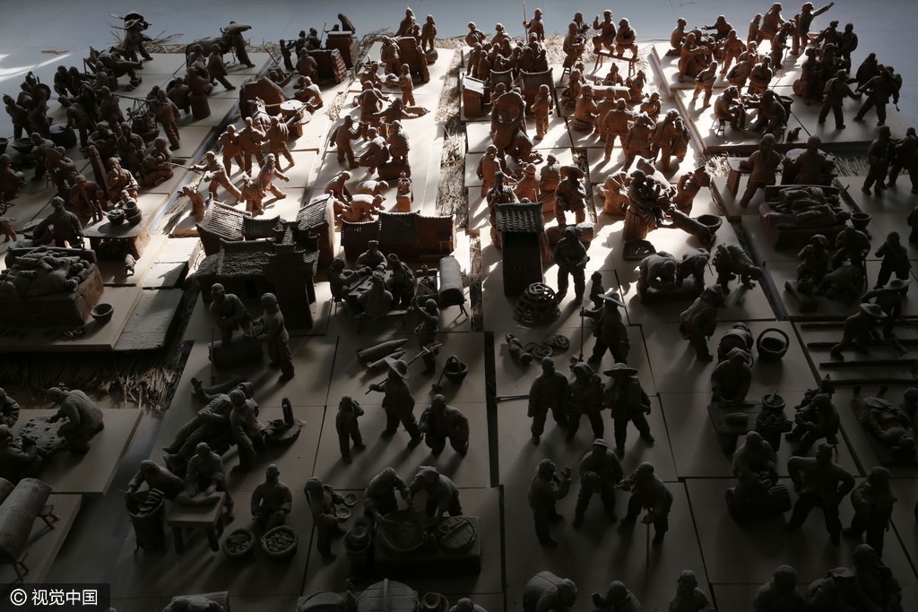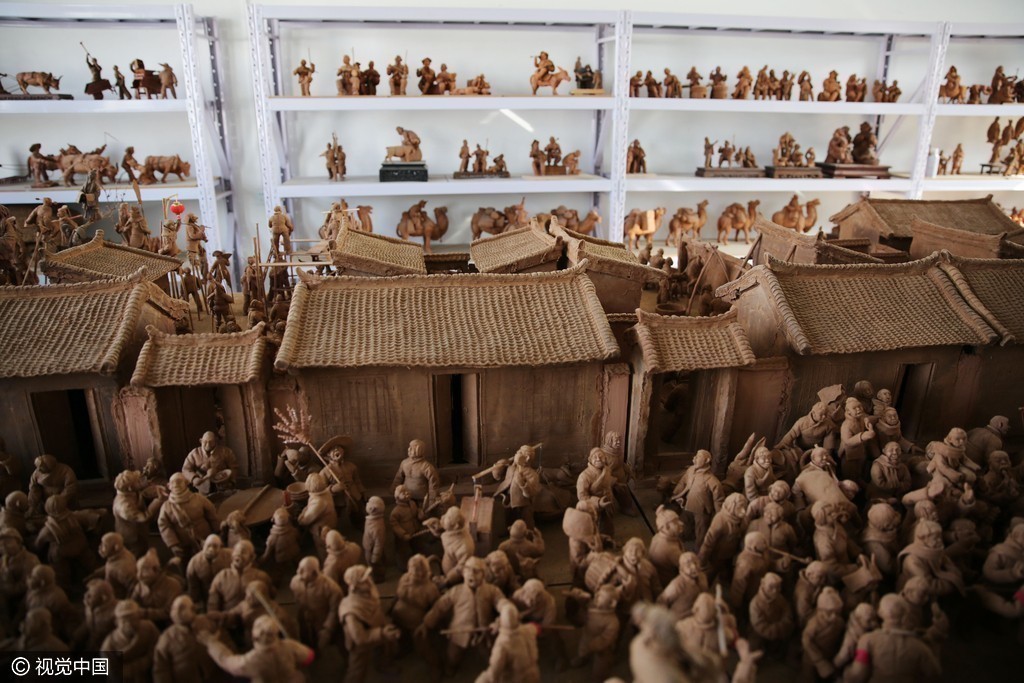 2016年11月23日,陕西省西安市长安区郭杜周家庄村,65岁的农民泥塑达人苗春生天天都在捏泥人。