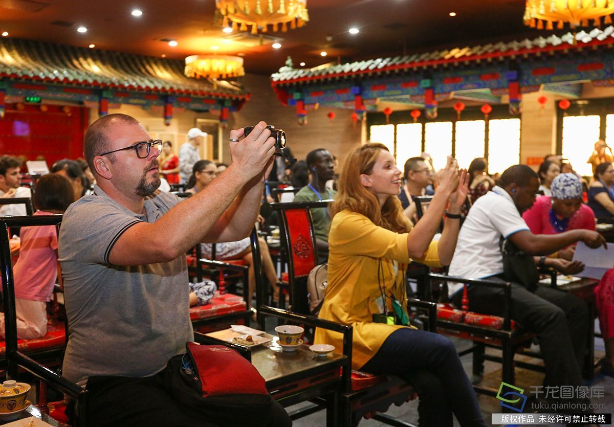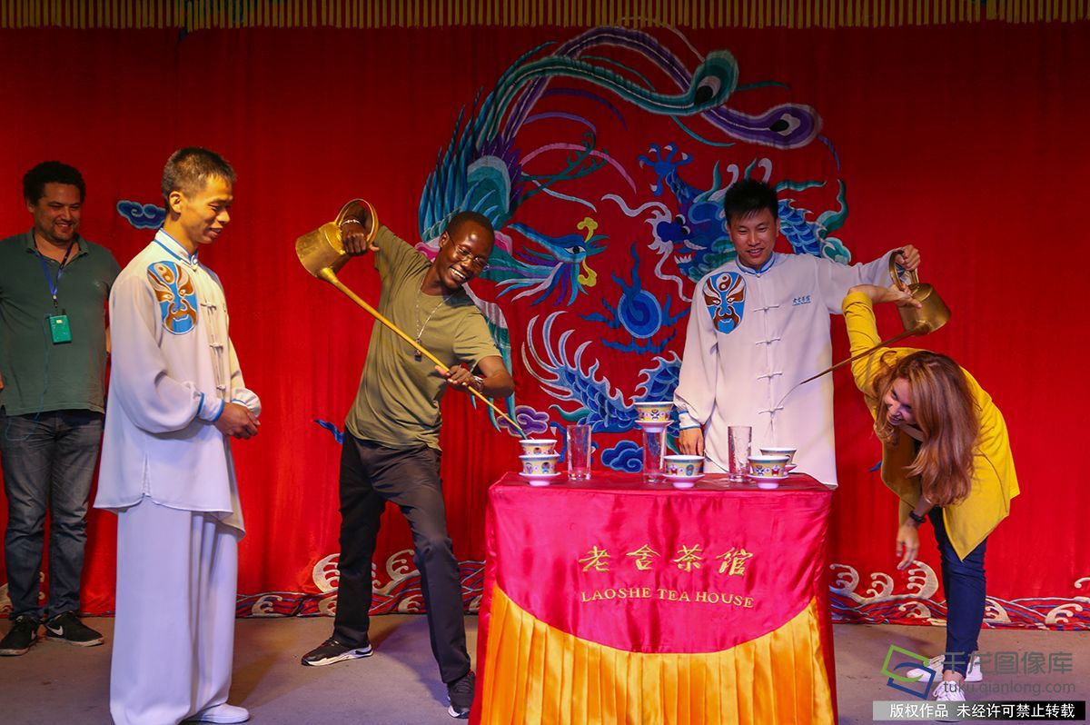 8月30日晚,中非合作论坛北京峰会记者团一行在老舍茶馆,品尝极具老北京特色的糕点和盖碗茶,观看各界名流的精彩演出。