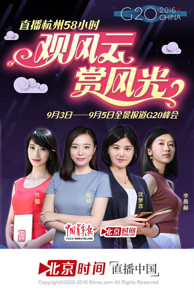 “北京时间”与《中国青年报》组成联合报道团队奔赴杭州,20名前方记者和直播团队、165名后方工作团队,全程全景直播峰会盛况,会场内外不留死角,陪你观风云,伴你赏风光。