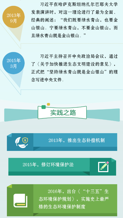 建设生态文明是关系人民福祉、关乎民族未来的大计,是实现中华民族伟大复兴中国梦的重要内容。二〇一三年九月七日,习近平总书记在哈萨克斯坦纳扎尔巴耶夫大学发表演讲并回答学生们提出的问题,在谈到环境保护问题时他指出:“我们既要绿水青山,也要金山银山。宁要绿水青山,不要金山银山,而且绿水青山就是金山银山。”这生动形象表达了我们党和政府大力推进生态文明建设的鲜明态度和坚定决心。要按照尊重自然、顺应自然、保护自然的理念,贯彻节约资源和保护环境的基本国策,把生态文明建设融入经济建设、政治建设、文化建设、社会建设各方面和全过程,建设美丽中国,努力走向社会主义生态文明新时代。