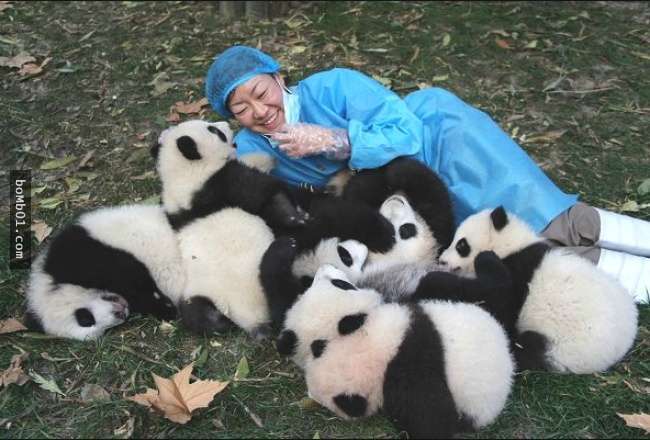 成都大熊猫繁育研究基地每天的工作内容只有一件事,那就是把熊猫照顾好,把它们当作自己小孩一样的照顾。