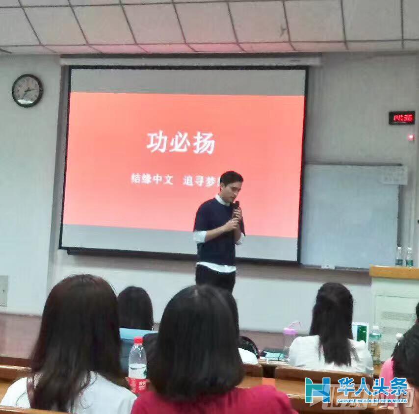 功必扬(Brian Gonzalez),阿根廷人,90后,第六届“汉语桥”大赛阿根廷赛区冠军,那年他才16岁,也是刚刚开始学习中文的第五个月。在赢得了大赛奖学金后,18岁那年他只身第一次来到中国,在北京第二外国语学院学习,2016届国际贸易专业硕士毕业生,外交翻译。
