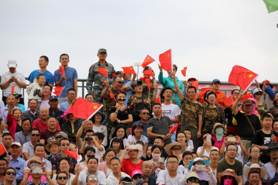 “五星红旗迎风飘扬,胜利歌声多么响亮;歌唱我们亲爱的祖国,从今走向繁荣富强。”大漠戈壁,烽烟又起,熟悉而又激动人心的合唱响彻8月5日的“国际军事比赛—2017”“晴空”防空导弹多能赛的赛场。据统计,约有1万5千名观众到现场观战,点燃了现场气氛。