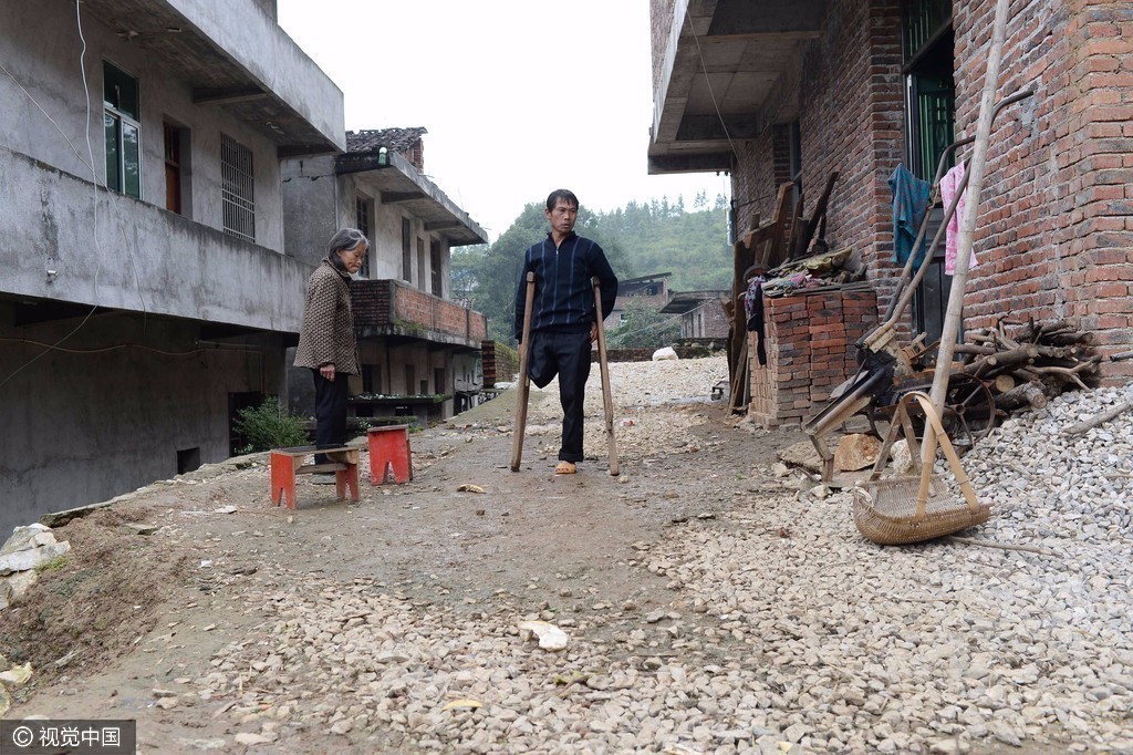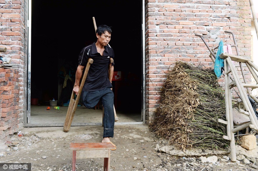 在村民眼中,范家发是个异常勤劳的男人,“他只有一条腿,能牵牛耕地,种水稻,很不容易。”