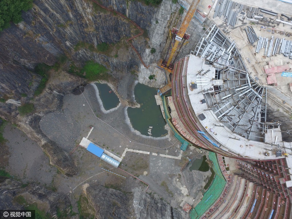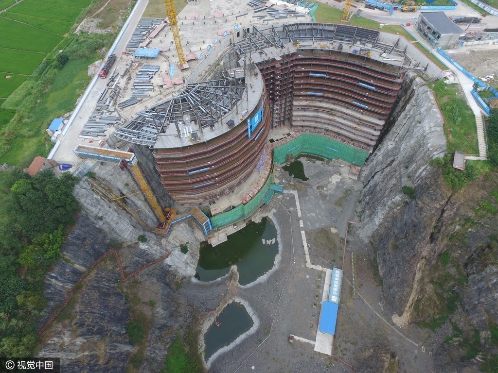 近日,位于上海市松江区的“深坑酒店”已基本完成其地下工程的建设。建设方预计,2017年底酒店可实现工程竣工并试营业。