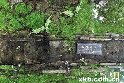 ■宋代路面的遗址几乎完全被青苔所覆盖,周围还长出了小草。