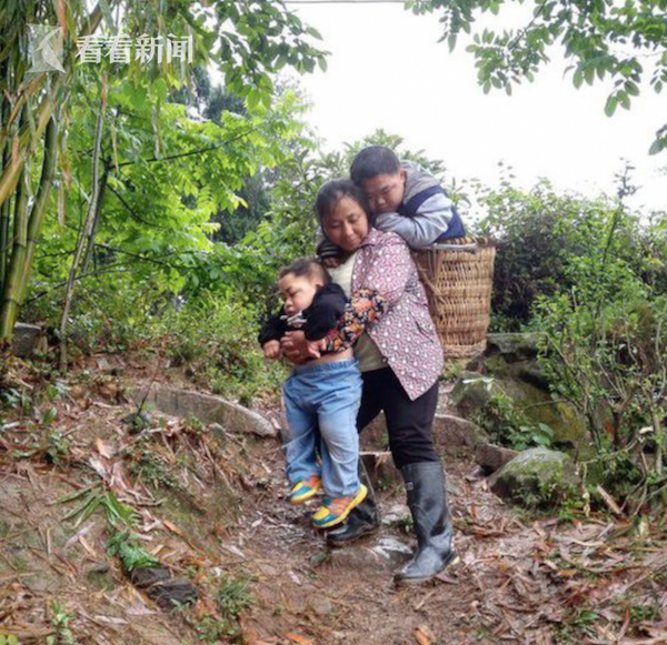 四川省达州市隘口乡,郑琴和两个患有侏儒症并发脆骨病的儿子生活在这里。放学时间快到了,郑琴站在五年级教室的门外,准备接小儿子吴松放学回家。
