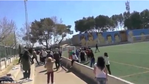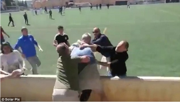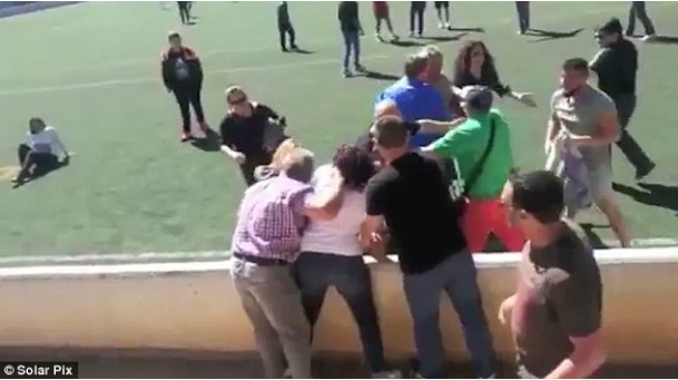 在西班牙举办的一场少年足球赛上出现罕见一幕,众多孩子家长冲上赛场互殴,这场足球赛最后演变成暴力冲突现场。