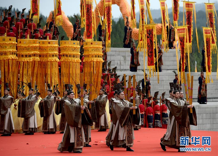 4月5日,演员在公祭轩辕黄帝典礼上表演黄帝祭典乐舞告祭。当日,戊戌年清明公祭轩辕黄帝典礼在陕西省黄陵县桥山黄帝陵祭祀广场举行,近万名海内外中华儿女参加仪式。