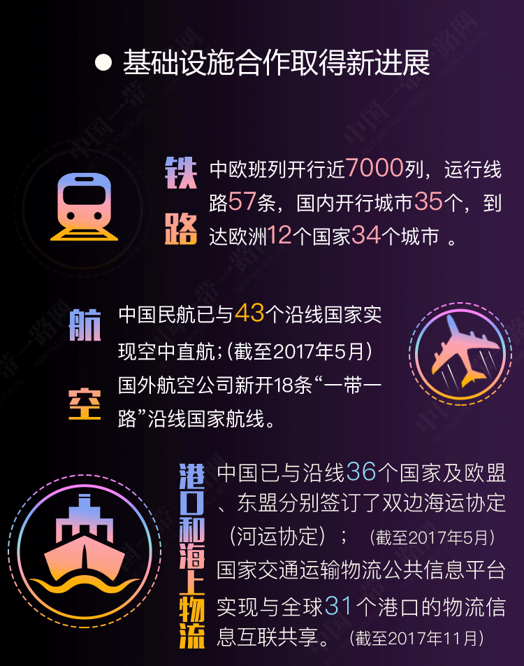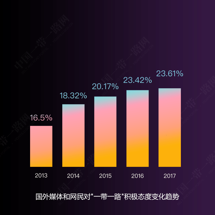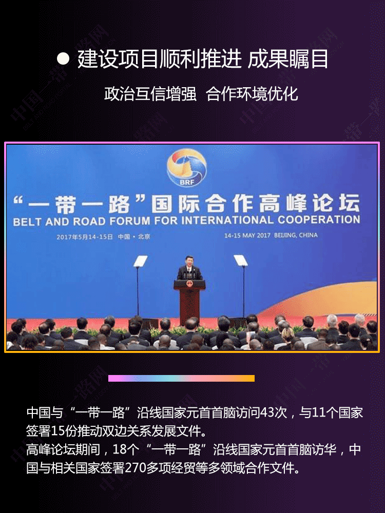 2017年,"一带一路"倡议进一步吸引全球关注,关注热度持续攀升。各领域不断签署推进重大项目,建设成果丰硕。