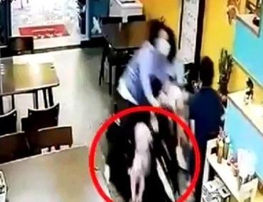 高雄一位妈妈骑机车载着2岁女儿来到一家早餐店,要让孩子先下车,没想到因为车辆还未熄火,孩子又误触油门。