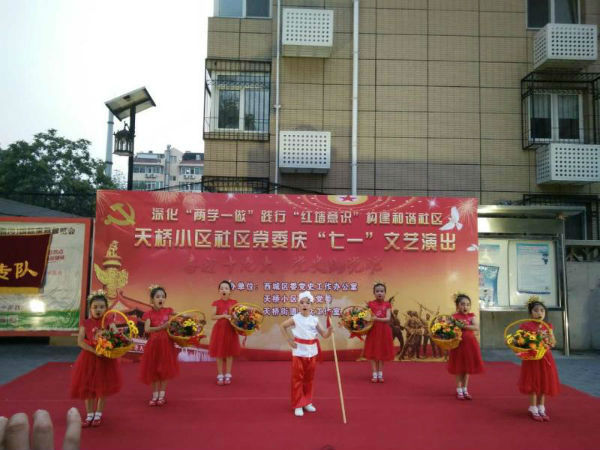 2017年6月28日,西城区委党史工作办公室联合天桥街道天桥小区社区,以深化"两学一做"践行"红墙意识"构建和谐社区为主题,举办了纪念建党96周年庆"七一"文艺演出。区委党史办、天桥小区社区党员干部及社区群众近百余人观看演出。