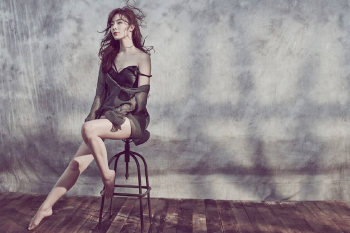 照片中,陈数或身穿丝绸睡裙,大长腿十分抢镜;或穿黑色蕾丝裙,肩带滑落,小秀性感。