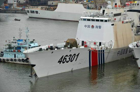 中国海警船安装630近防炮船头有一座HPJ-26型76mm速射舰炮,以前718B型海警船。