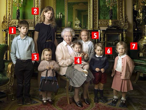 (女王与曾孙辈合影)