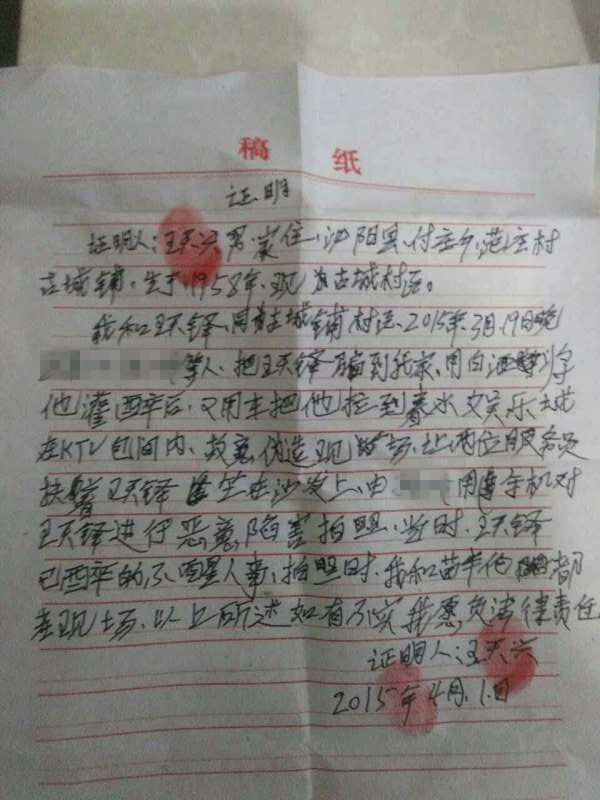 王天铎推测的另一个原因,则是今年县里要求所有公职人员都不能去娱乐场所。为此还发过一份“保证书”,所有公职人员都要签字,老师也不例外。“也许对方觉得现在举报,更有力度。” 王天铎分析,可能出于同样的原因,才把时间从2015年3月改成2016年元月。