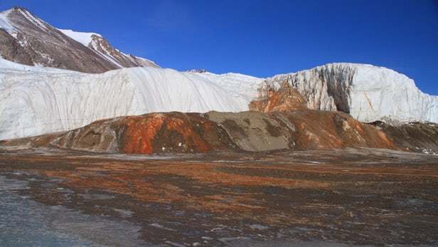"血瀑布"可能听起来像是惊悚小说的标题,但实际上是一个困扰科学家一个多世纪的南极之谜。"血瀑布"位于东南极洲的泰勒冰川 ,1911年首次被澳大利亚地质学家Griffith Taylor发现,倾泄着红色之水的"血瀑布"与白色的冰川形成鲜明对比,一直令探险者感到困惑不已。