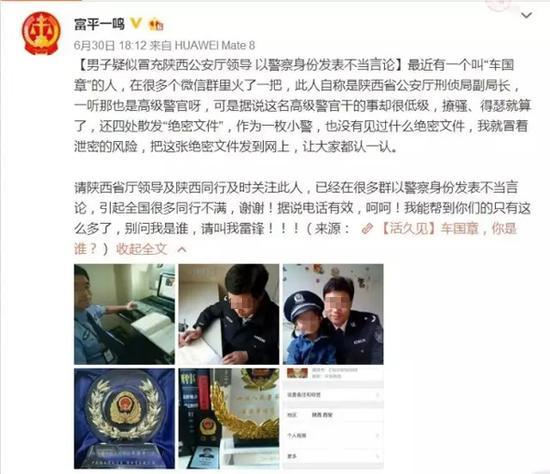 车国章向警方供述称,他冒充国家工作人员就是爱慕虚荣为了炫耀,警用制服装备是他从网上购得。