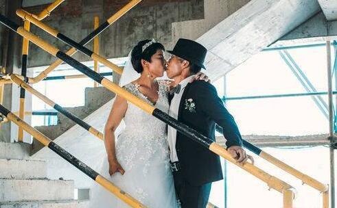 8月23日,四川南充市嘉陵区一建筑工地上,56岁的建筑工人张明碧在结婚31年后,终于穿上婚纱,和丈夫骆新元,拍了歆羡已久的婚纱照。