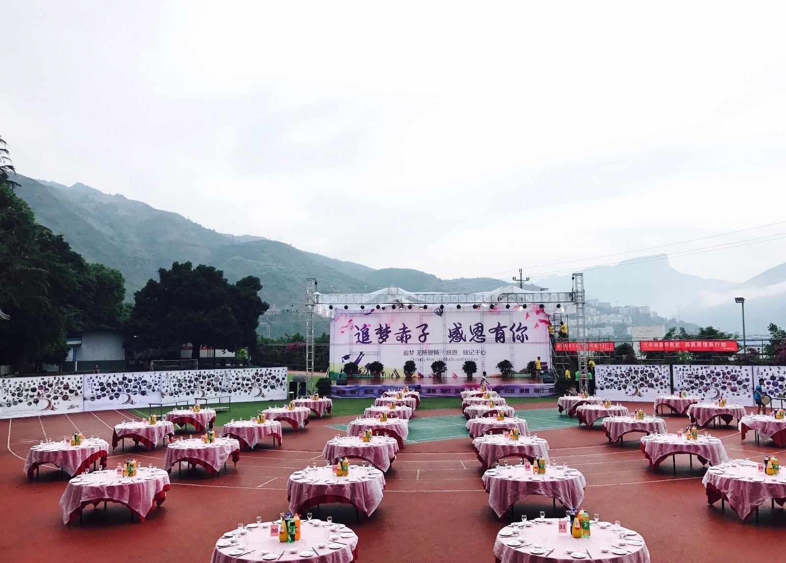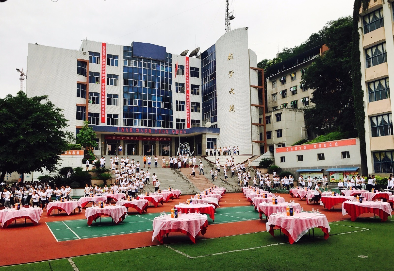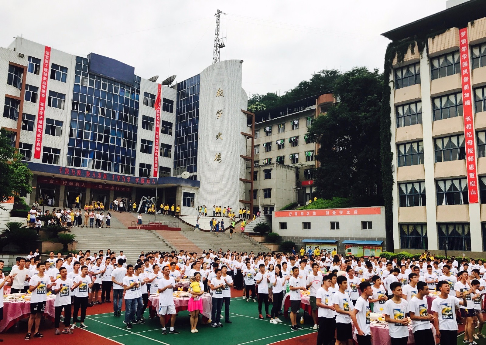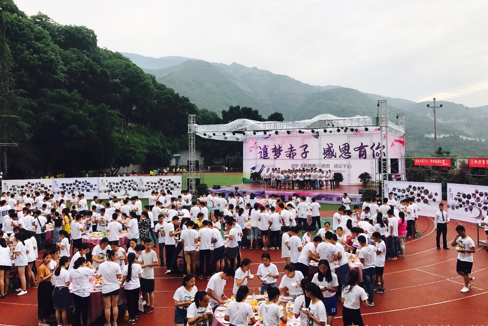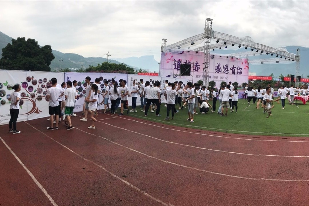 6月11日,重庆市行知高级技工学校在学校的运动场上举办谢师宴,14级的300多名毕业师生欢聚一堂,共同欢庆毕业。