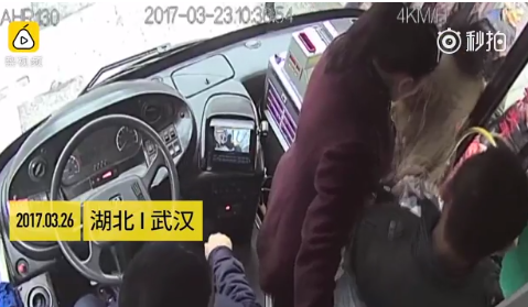 公交司机及时按下一键报警并堵住车门,将男子控制住,随后野蛮男子被警方带走。