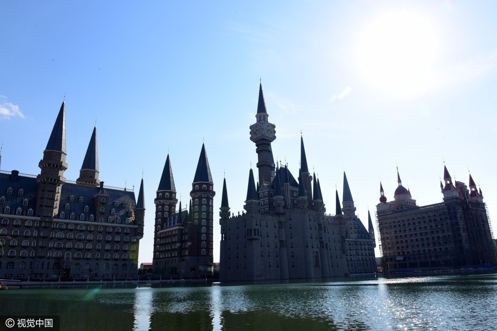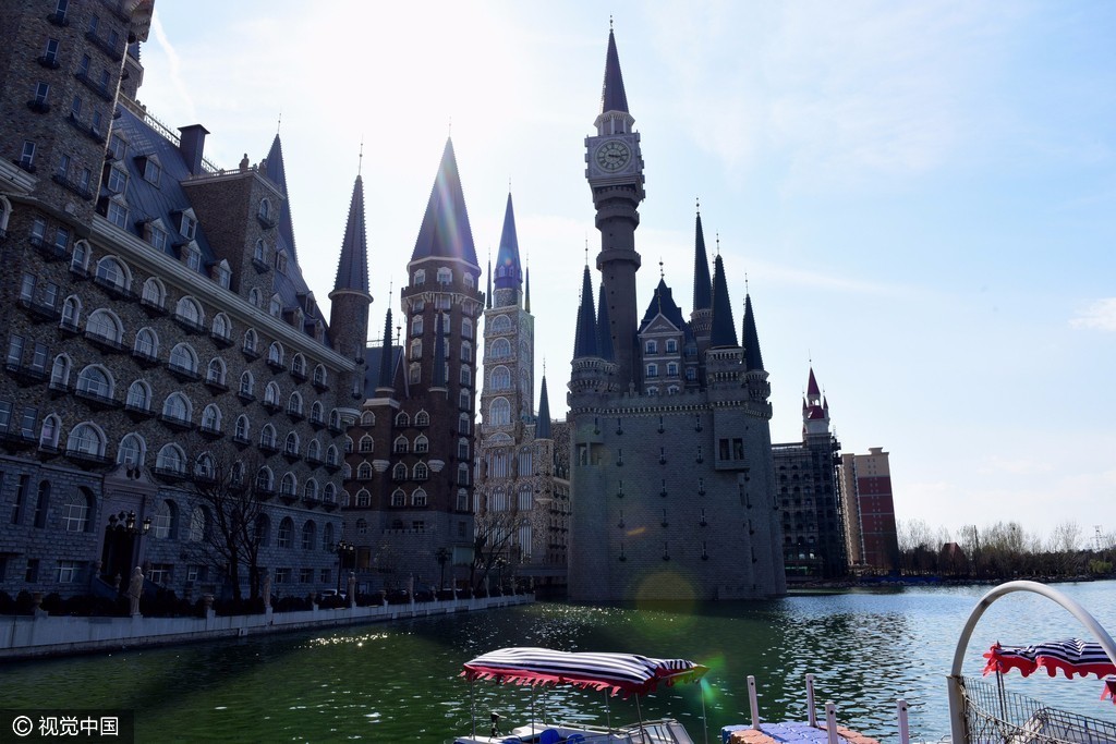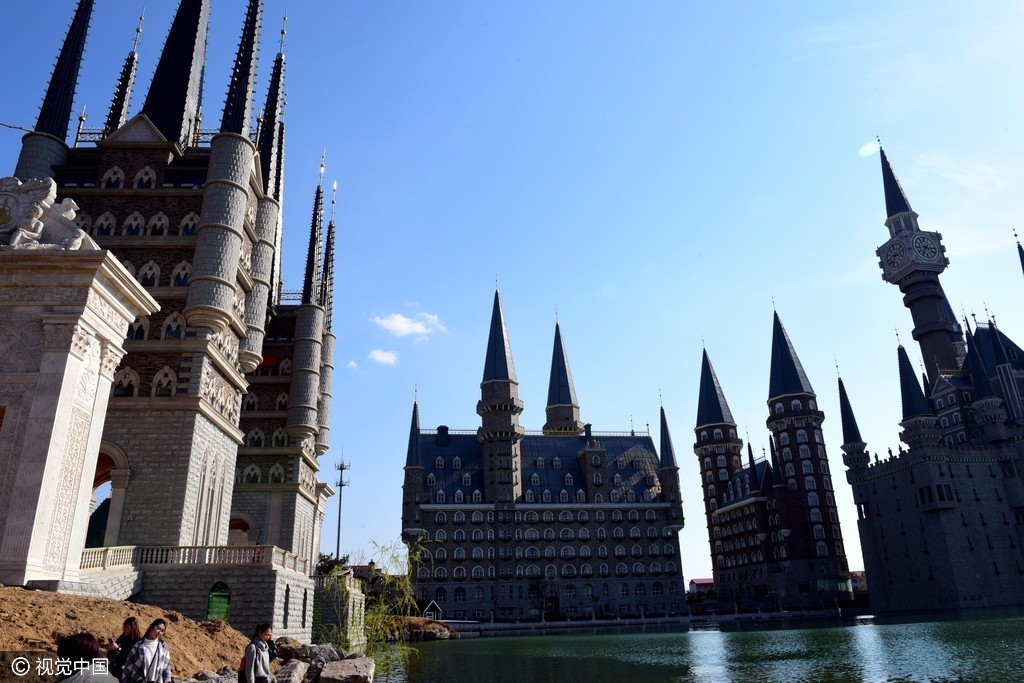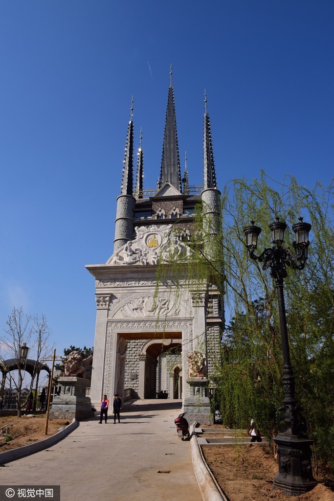 2017年3月26日,位于河北石家庄新乐市河北美院的“灰姑娘城堡”在蓝天的映照下格外美丽,游客宛如置身到了欧洲。