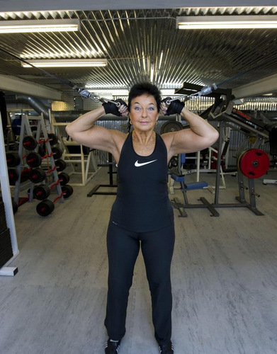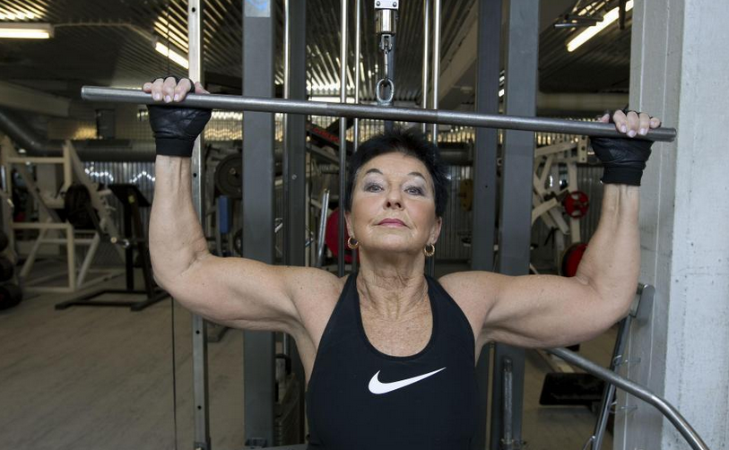 这位满身肌肉老太太名叫Wanja Sjodin,来自瑞典,今年80岁。对你没看错,就是80岁。