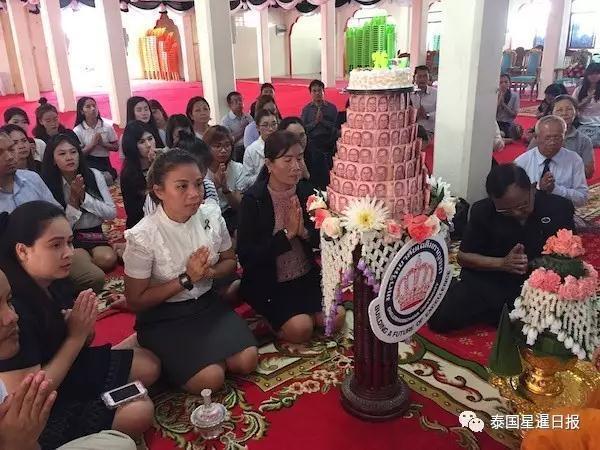 为泰国四色菊府佛教僧团首领拍拉差格第兰实76岁大寿,泰国一大学副校长拓实组织师生为其举办了生日诵经法会。