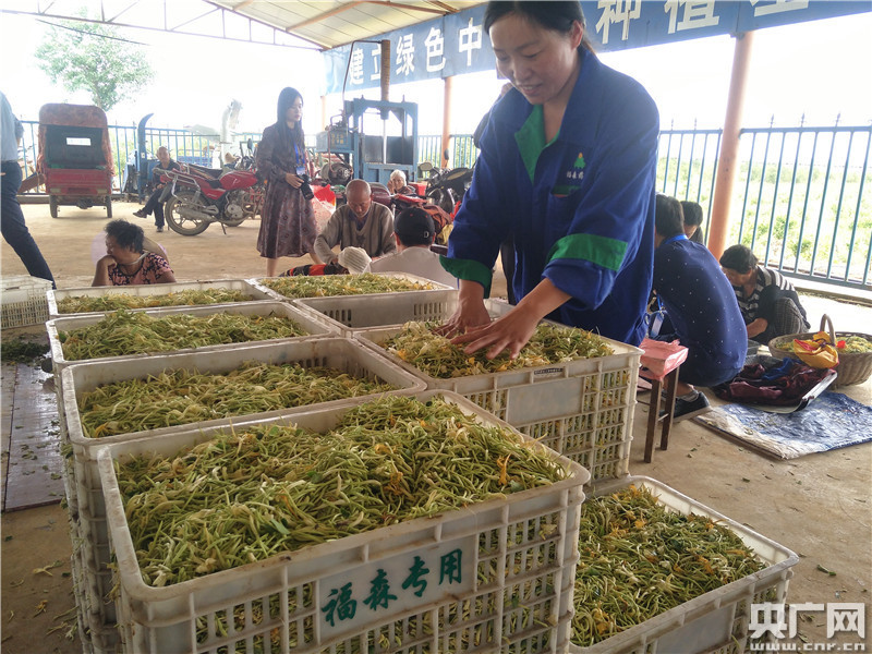“你看,要挑选这种成熟饱满、花色正好或是接近青白颜色的花蕾,不要幼蕾,也不要带叶子。”今年57岁的路香芹小心地用手捏住金银花底部,正在熟练地采摘着花蕾。