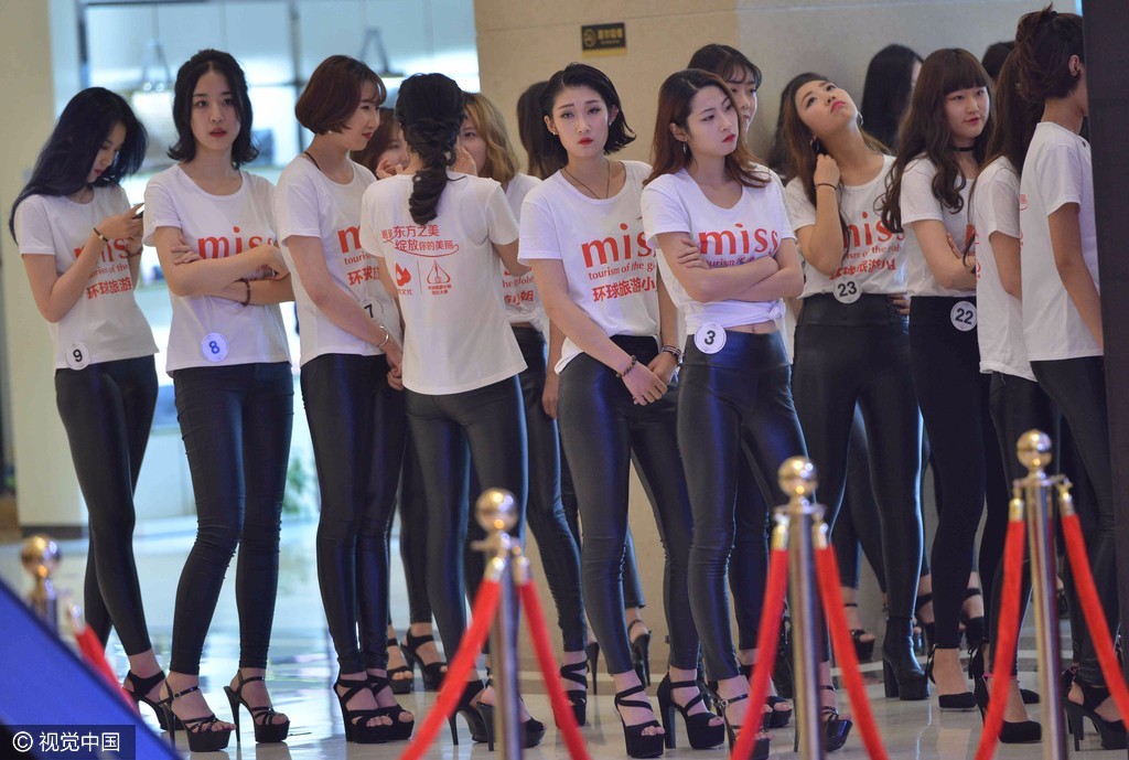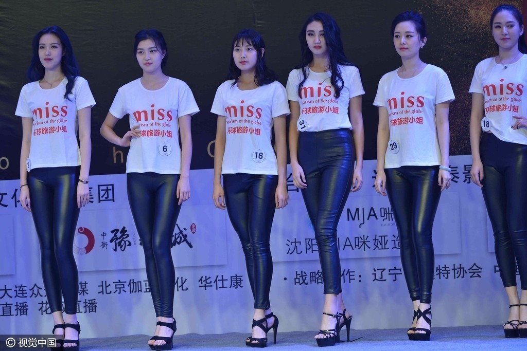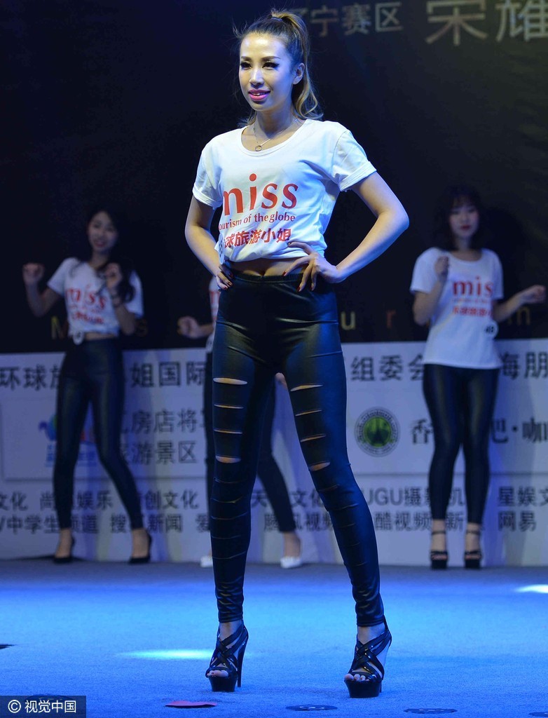 佳丽集体穿皮裤登场大秀身材,后台换装旗、制服装、展现婀娜多姿唯美一面。
