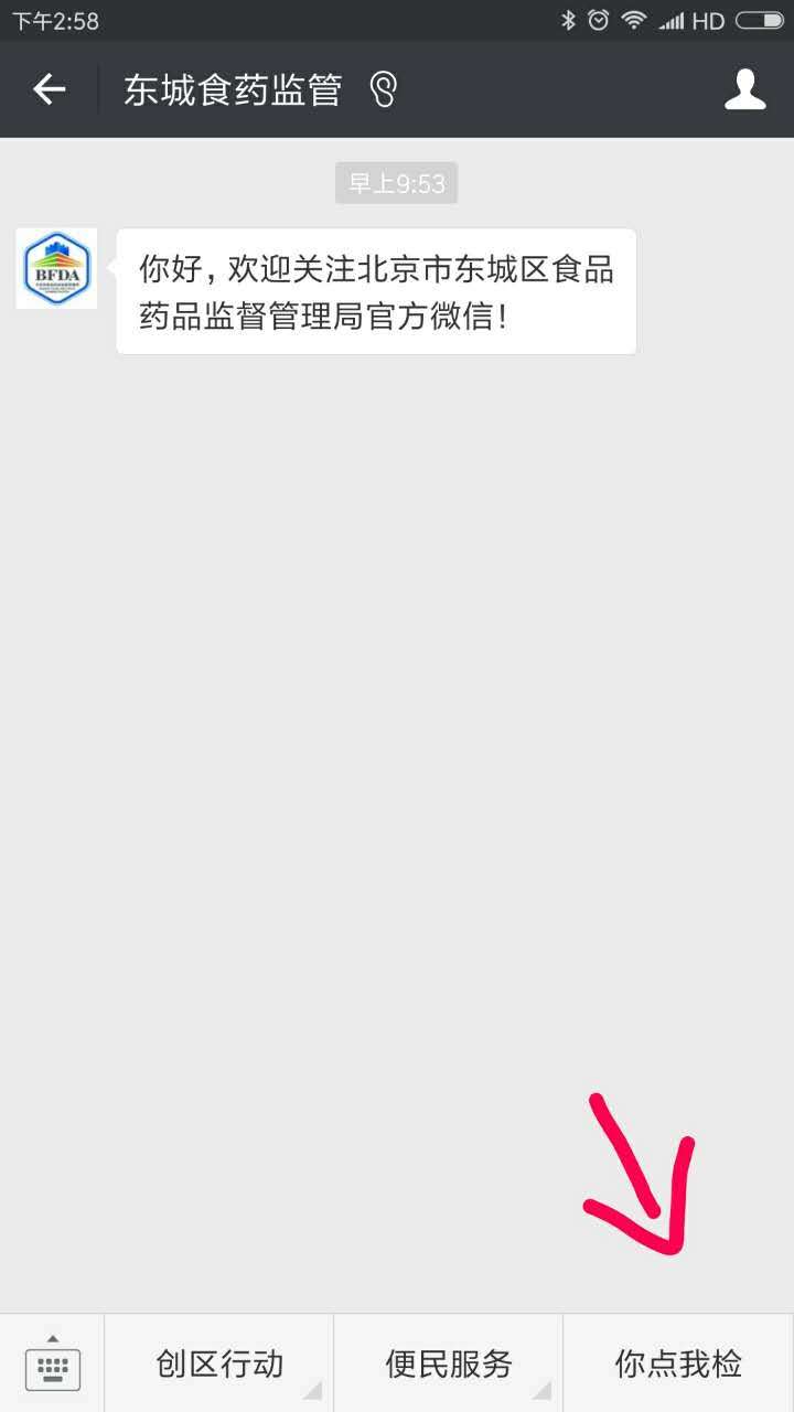 百姓线上提交诉求,食药监部门线下检测,百姓点什么食品,食药监部门就检什么,这是东城区食药监局在微信上开通的“你点我检”平台。