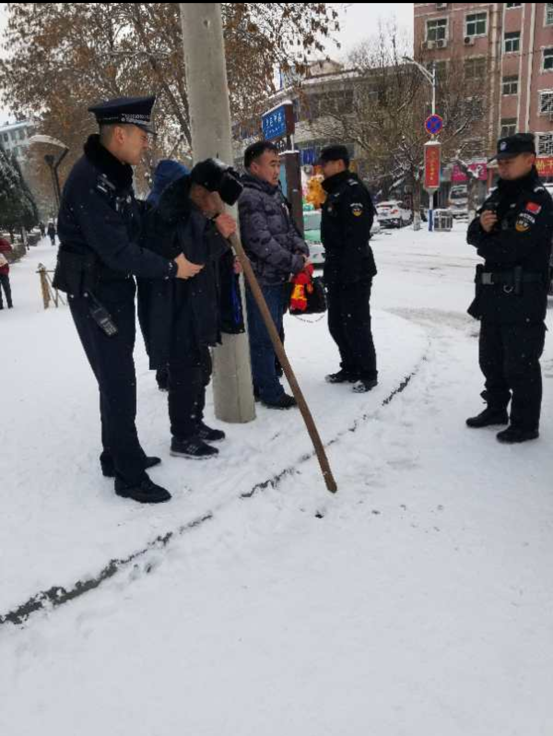 2018年1月4日,室外温度-6℃,寒风凛冽,天空中雪花漫天飞舞,登封市公安局崇高路派出所民警的一个举动,给这寒冷的冬季增添了一丝温情。