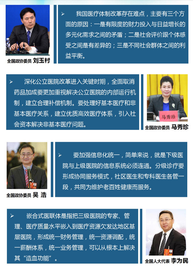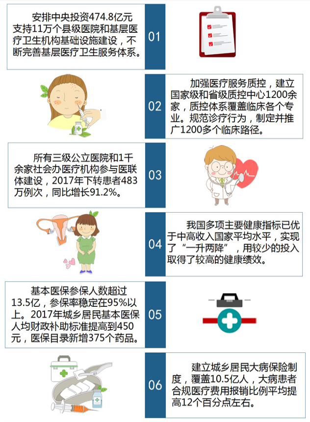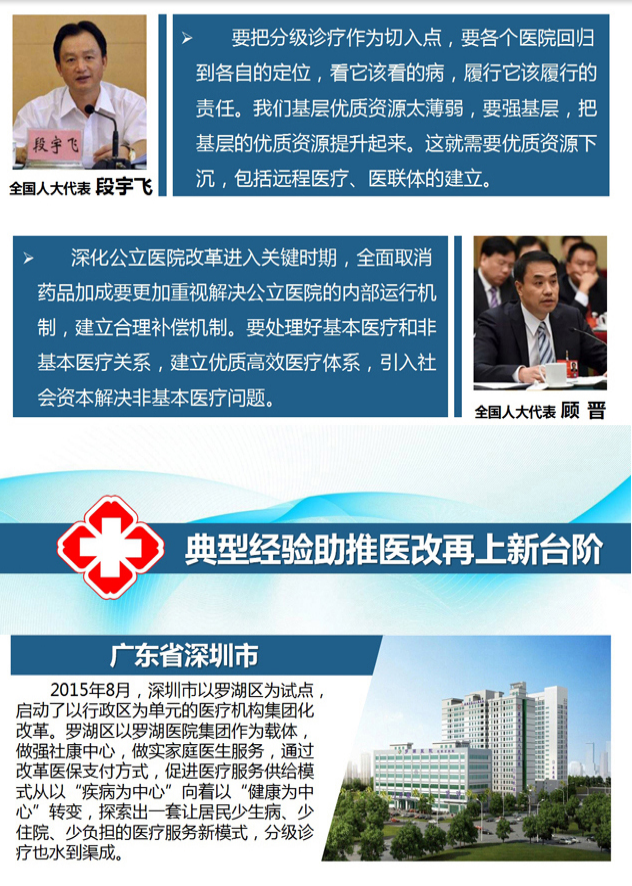 2018年政府工作报告指出,要深化公立医院综合改革,协调推进医疗价格、人事薪酬、药品流通、医保支付改革,提高医疗卫生服务质量,加强全科医生队伍建设,加快推进分级诊疗和医联体建设,下大力气解决群众看病就医难题。