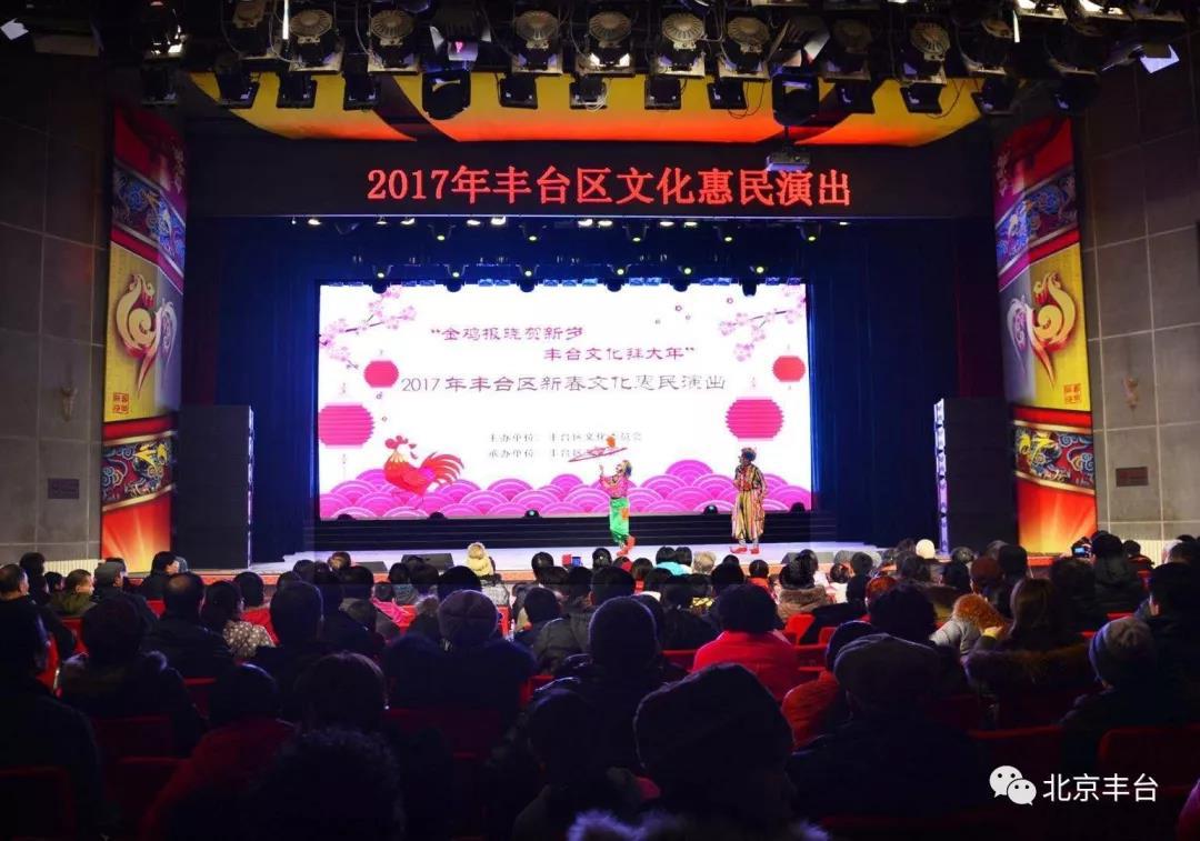 1月下旬至3月初,丰台区各级文化服务机构将举办新春惠民文化活动500余场次,涵盖文艺汇演、戏曲晚会、曲艺专场、阅读活动、电影放映、展示展览等群众喜闻乐见的文艺形式,伴随全区各界群众在欢乐祥和的氛围中,共享文化发展成果。