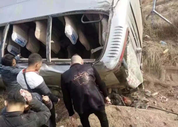 初步分析,大客车在行驶途中与一辆轿车发生剐蹭,为了躲避轿车,大客车不慎侧翻至高速护栏外。
