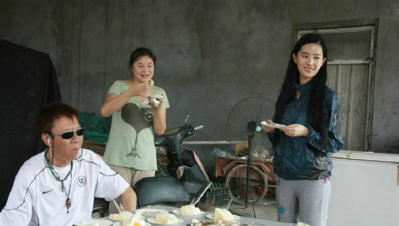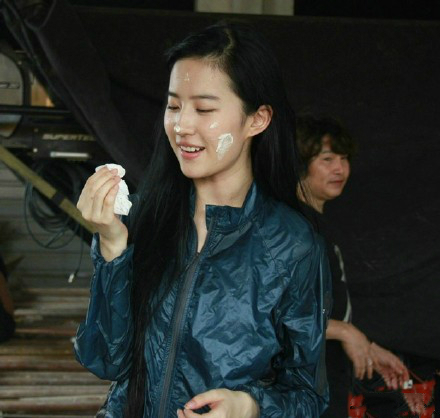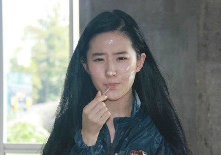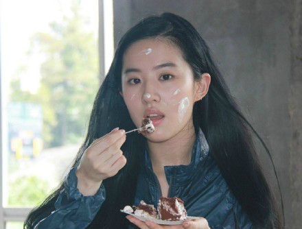 近日,刘亦菲一组在剧组庆生的照片曝光,素颜的刘亦菲穿着蓝绿色外套,头发随意披散,脸上被糊了好几块奶油,表情十分可爱。