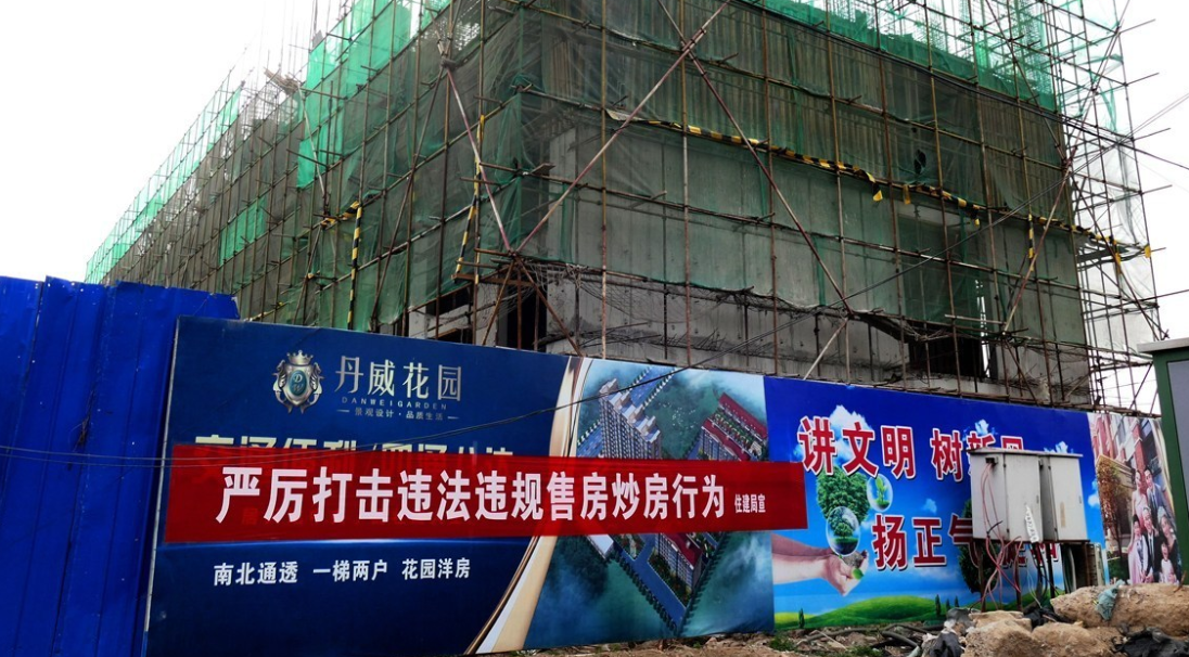 2017年4月10日,在河北雄县的大街小巷,挂着遏制炒房的横幅、标语。