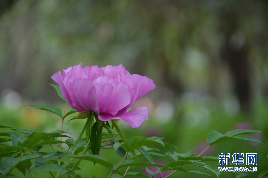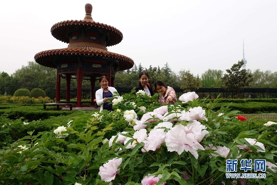 4月8日,河南省洛阳市,中国国花园牡丹盛放,游客在园内赏花。新华网发 许建梅摄