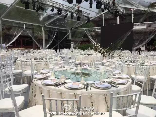 撒贝宁、李白在武汉东湖梅园举行婚礼。撒贝宁一身帅气西装现身,新娘子李白穿婚纱身姿婀娜,两人深情拥吻,李白大露美背。