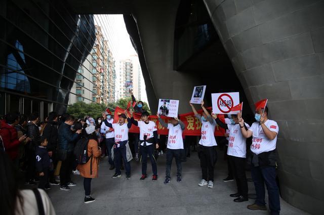 不过,现场一群爱国人士对她们来华的行为表示抗议,认为应抵制曾经参拜过靖国神社的AKB48。