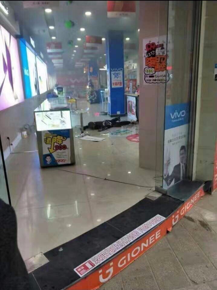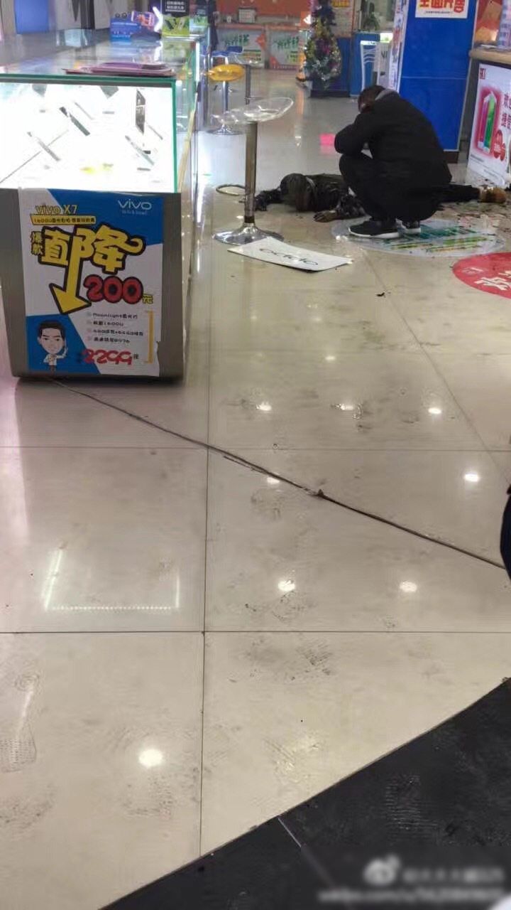 湖北南漳县城区一家联通手机专卖店内,一女子被泼汽油后点燃,烧伤严重。