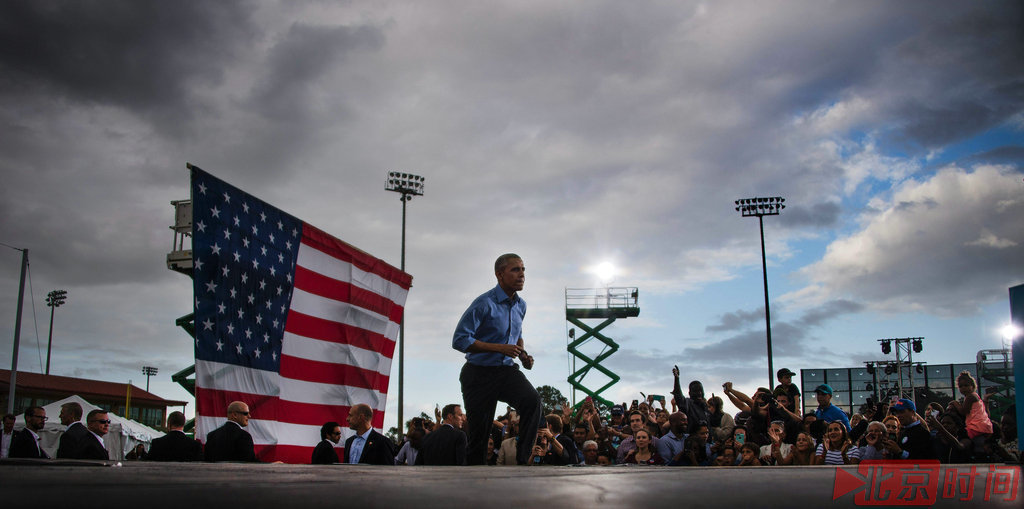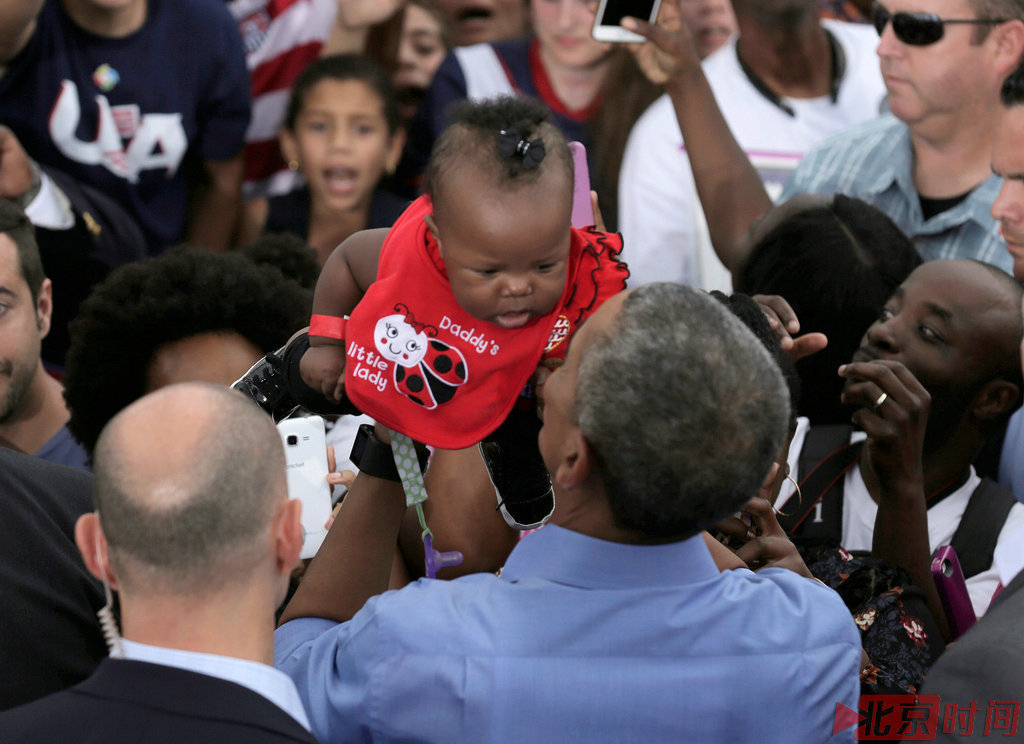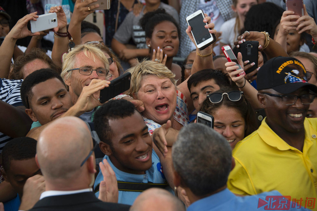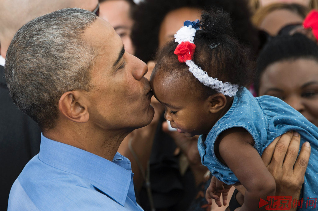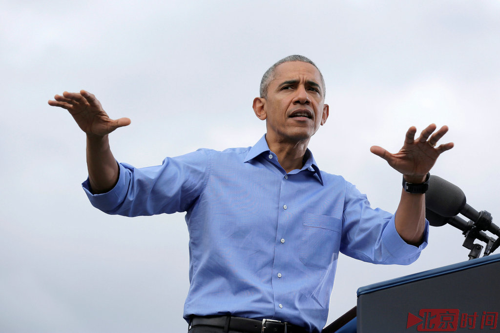 当地时间2016年11月6日,美国佛罗里达州基西米,美国总统奥巴马为希拉里拉票。