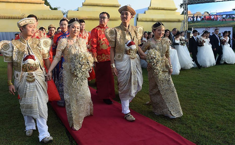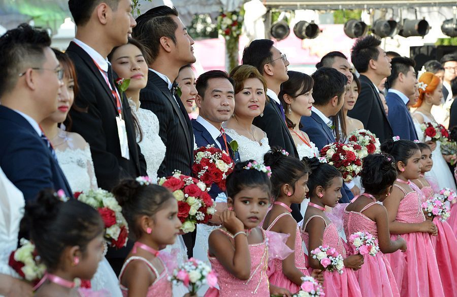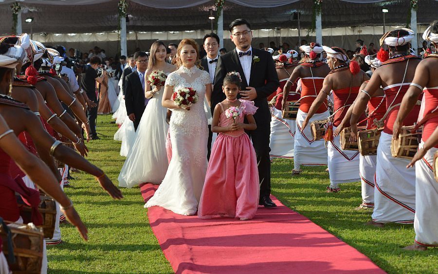 12月17日,首届中国新人斯里兰卡集体婚礼在科伦坡市政厅前草坪上举行。(图片来源:视觉中国)