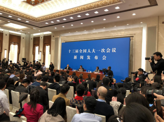 3月4日上午,十三届全国人大一次会议首场新闻发布会在人民大会堂一楼新闻发布厅举行。大会新闻发言人张业遂向中外媒体介绍大会有关情况,并回答记者提问。